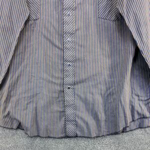 Condition: Polyester blend striped dress shirt with pearl snap closure. No stains or rips!