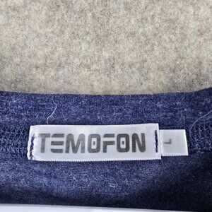 Temofon Womens Long Sleeve Lightweight Top Heathered Blue Crew Neck Rayon Blend