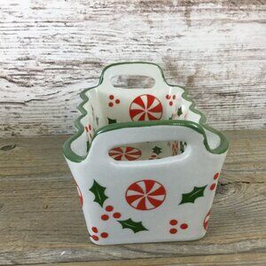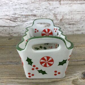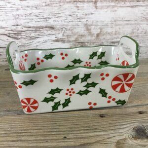 Temp-Tations 12 Oz Ceramic Holiday Mini Loaf Pan w/ Handles Holly & Peppermint