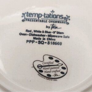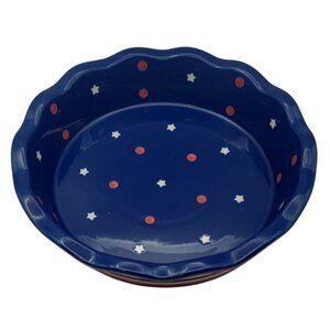 Temp-Tations By Tara Stars & Stripes 9" Pie Plate Dish Red White & Blue Ovenware