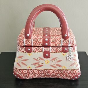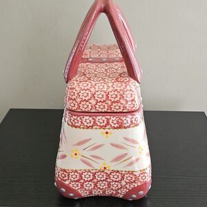 Temp -Tations Ovenware in the unique shape of a handbag will definitely be a conversation piece at the dinner table. It does have a large chip on the lid per the picture but otherwise it's in great previously owned condition.