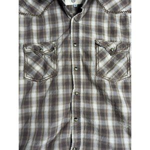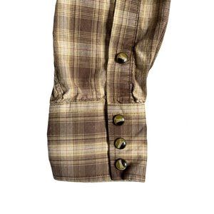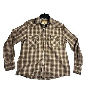 Tempco Long Sleeve Pearl Snap Brown Plaid Western Shirt Size Mens Medium