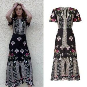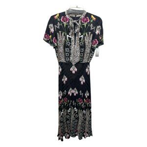 Temperley London dress, Temperley London Flux dress, Temperley London floral dress, Temperley London midi dress, Temperley London size 6, designer midi dress, luxury dress, floral print dress, black floral dress, tie neck dress, V-neck midi dress