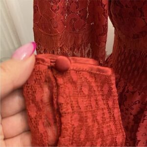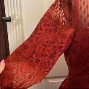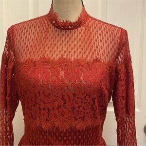 Temperley London Red Ruffled Tiered lace Dress with, US8