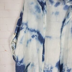 Tempo Paris 100% Linen Hoodie Hoody Hooded Jacket S/M Tie Dye Lagenlook Boho Beach Cover-Up Lightweight Relaxed Fit