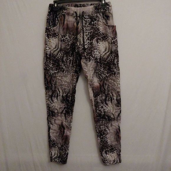 Tempo Paris Black, Grey and Brown Leopard Pattern Hogger Pockets. M