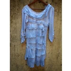 Tempo Paris Light Blue Layered Fringe Hem Tunic Dress Women’s Size L