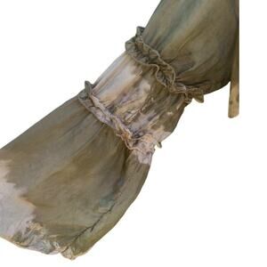 Tempo Paris Silk Olive Green Gathered Tie Dye Ruffle Boho Top S/M