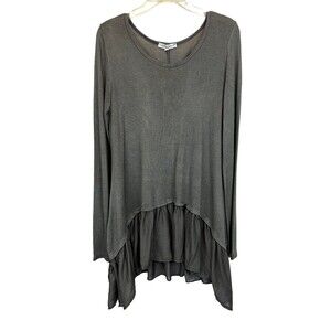 Tempo Paris Tunic Top Womens S Boho Lagnelook Charcoal Knit w Woven Ruffle