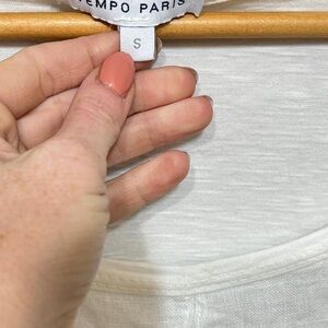 This elegant white blouse by Tempo Paris features a relaxed fit with an asymmetrical hemline, offering a chic and modern look. The long sleeves and airy fabric make it perfect for layering or wearing on its own during cooler days.