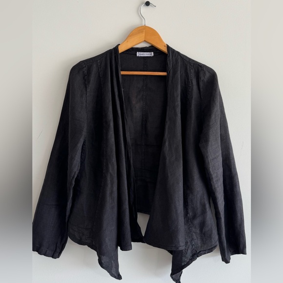Tempo Paris Women Black 100% Linen Open Front Jacket Boho Avant Garde Artsy S