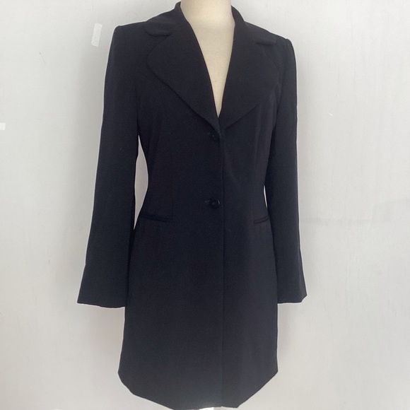 Tempo Paris long fitted power classic tailored two button lined black blazer 6