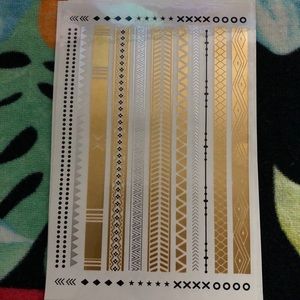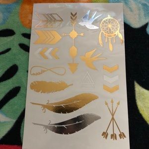 Body glam tattoos. Temporary tattoos non-toxin, waterproof. The original pack came with a set of 2 and I added a 3rd one that is unopened/unused from a previous pack I had. 3 sheets in total.