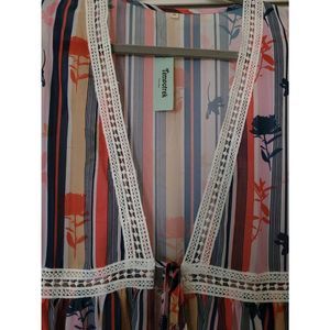 Tempotrek Cover-up Size XL Multicolor Striped Floral Print With Crochet Tye New