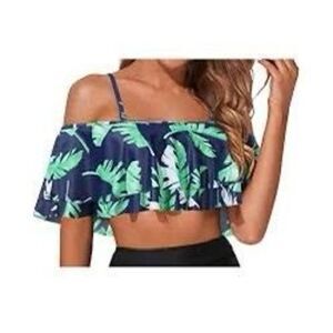 Tempt Me Bikini Top Womens Large Flounce Ruffles Off Shoulder Swim NEw Tropical