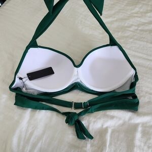 Tempt Me Emerald Green Bikini Swim Top Halter Retro Bathing Suit size XL NWT