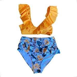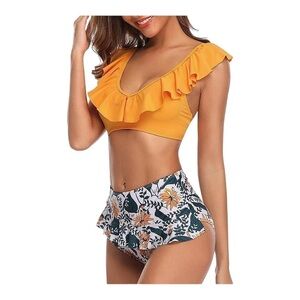 Tempt Me High Waist Floral Ruffle Bikini NWT