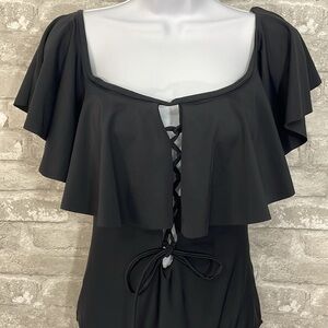 Tempt Me Lace-Up Front Off Shoulder Ruffle One Piece Swimsuit