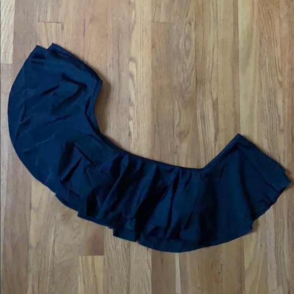 I love love love this bathing suit top. I'm so sad that it no longer fits. This was only worn 2-3 times in Palm Springs last summer. Like new, no flaws. I no longer have the straps that go with the top. Top is double ruffled flounce off shoulder crop top. Third photo shows suit on model.