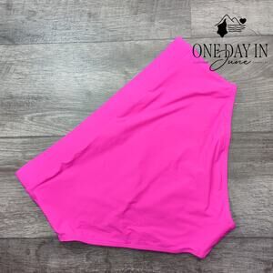 This pink bikini bottom sits high on your waist, oh what a treat! Made with stretchy fabric that's soft and neat, it's perfect for splashing in the summer heat!