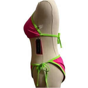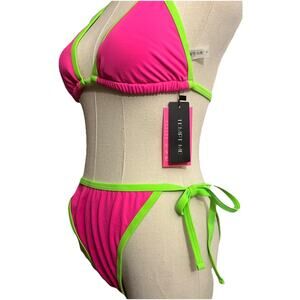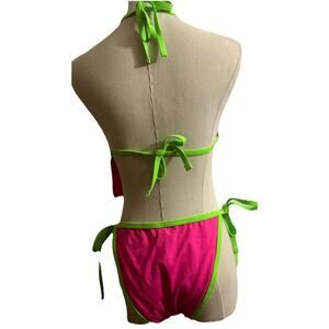 The Tempt Me Women Triangle Bikini Sets are a sexy and stylish option for any woman looking to hit the beach or pool in a bold neon color. The two-piece set features a halter top with a colorblock pattern and string tie details, paired with a bikini bottom in the same hot pink hue. Made from a comfortable and stretchy nylon-spandex blend, this swimsuit is perfect for lounging by the water. The padded features and regular size make it a flattering and convenient choice for women looking to make a statement in their swimwear.