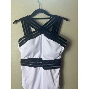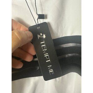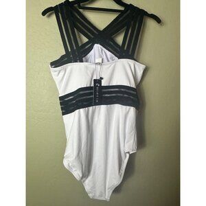 Tempt Me Women White Crisscross One Piece Swimsuits Mesh Tummy Control Bathing L