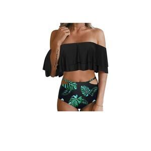 Tempt Me Women's bikini two piece medium high waist ruffle off shoulder