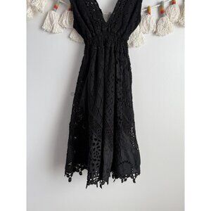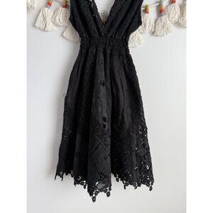 Temptation Positano Black Lace Crochet Smocked Mini Dress XS Coquette Whimsigoth