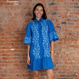 Temptation Positano Enza Shirt Dress in Blue Embroidery