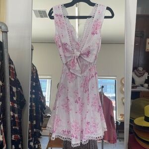 Made in Italy 100% Cotton V neck, backless with a tie back, elastic waist, mini silhouette