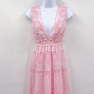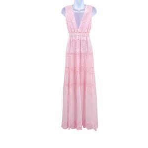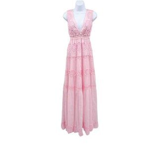 Temptation Positano Maldive Maxi Dress Pink Sleeveless Lace Crochet Silk Cotton