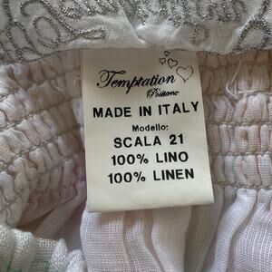 Temptation Positano Ravello Long Top Scala Mini Skirt Set in Butterfly. Size XS / Extra Small. Top features butterfly print throughout, round smocked neckline, elasticized hem, cropped, long sleeves with exaggerated cuffs, eyelet lace details. Skirt features butterfly print throughout, tiered silhouette, ruffled, smocked elastic stretchy waistband, eyelet lace detailing, pull on styling, mini length. 100% linen. Brand new, never worn, NWT / new with tags.