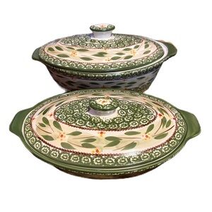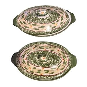Temptation by Tara Old World Green Covered Casserole Dish Bundle Lot Set of 2