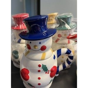 Add some fun to your Christmas tea time with this Temptations 5-Piece Snowman Entertaining Tea Set. The set includes a 48oz teapot and four 12oz mugs, all made of glossy ceramic material. The snowman novelty shape and candy cane pattern make it perfect for the winter season.