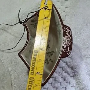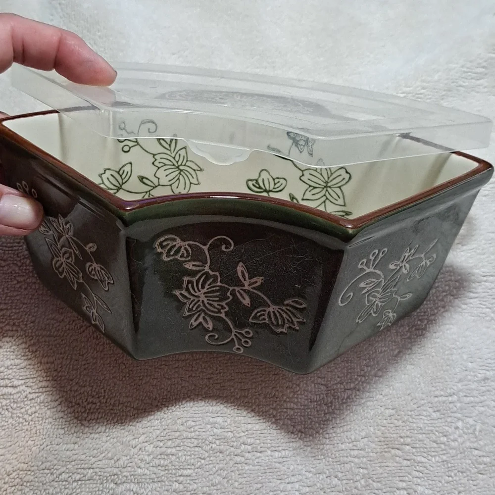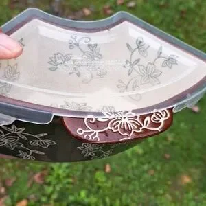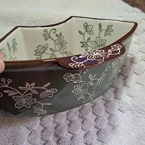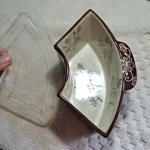 This is chip/Crack free..This can be a replacement for an oval that is was part of.4 or 5 went together to form a circle.Green/Brown/Beige.Floral Lace.Can be used alone.