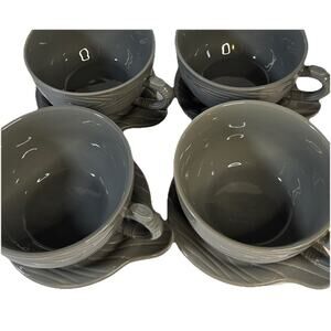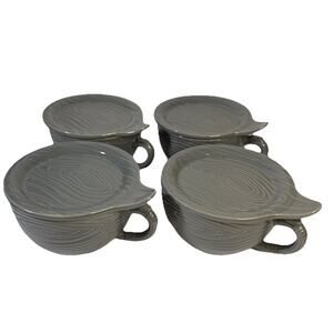 Temp-tations 8 piece Woodland 20 oz. Soup Mug & Sandwich Plate - Gray - LN