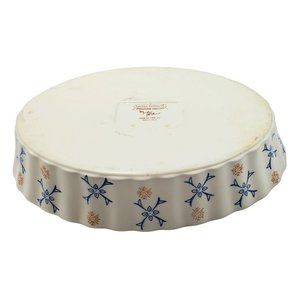 Temptations Atomic Flower Ceramic Oval Scalloped Casserole Dish Blue/Gold/Ivory