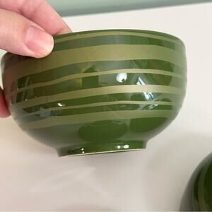 Temptations By Tara 3-Piece Set Nesting Bowls Dark Sleek Green Striped Ceramic