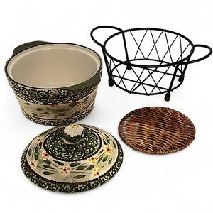 Temptations By Tara Bakeware Old World Green 1Qt Round W/ Lid And Stand
