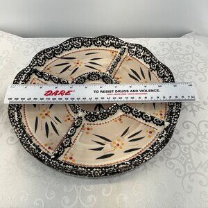Temptations Divided Serving Dish Black White Floral Design Appetizer Platter