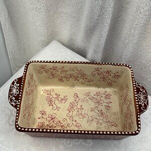 Temptations Floral Lace Bakeware Rectangular Dish Burgundy Red & Cream 1.5 QT Ce