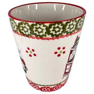 This Temptations Holiday Mug and Saucer Set features a charming Santa chef design. Hand-painted ceramic, it offers a festive touch to your kitchenware while being functional for daily use. With its 16 oz capacity, the mug is ideal for enjoying your favorite beverages.