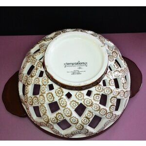 Temptations Lattice Work Basket Ceramic Bowl Brown Orange Kitchen Bakeware Decor