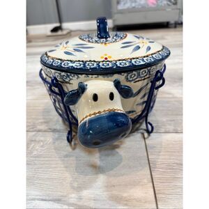 Temptations Old World Blue Cow 2.5 Qt Casserole dish & Mini Baker