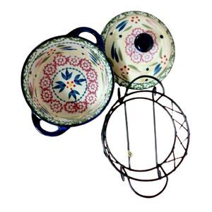 This is a cute Temptations mini casserole baking dish in the Old World Confetti pattern! It comes with a wire rack and is perfect for individual servings or side dishes. The dish is in excellent condition and ready to bring some charm to your kitchen.