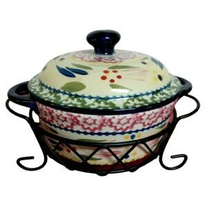 This is a cute Temptations mini casserole baking dish in the Old World Confetti pattern! It comes with a wire rack and is perfect for individual servings or side dishes. The dish is in excellent condition and ready to bring some charm to your kitchen.