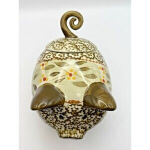 Temptations Old World Green Pig Spice Tea Jar Canister with Lid Stoneware