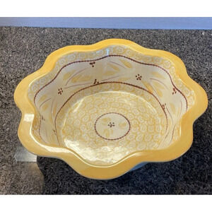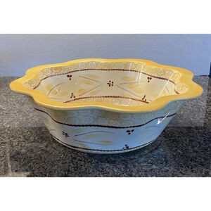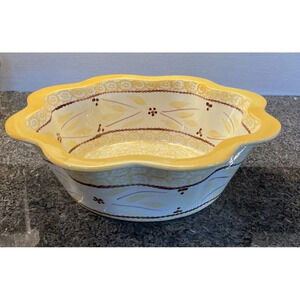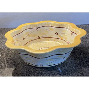 Temptations Old World Yellow Brown Floral 3 Qt Scalloped Salad Serving Bowl 12”