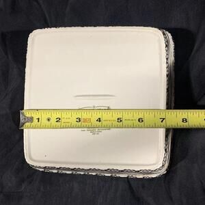 This square baking dish is made of high-quality ceramic material and is suitable for both electric and gas ovens. The dish is approximately 9 inches in diameter, 9 inches in length, and 3 inches in height. The set includes one casserole dish, and it is manufactured in China.