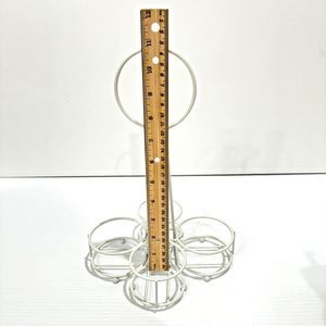 Includes: Oil and vinegar dispensers with metal pour spouts Salt and pepper shakers White coated wire stand/carrier Dishwasher safe EUC